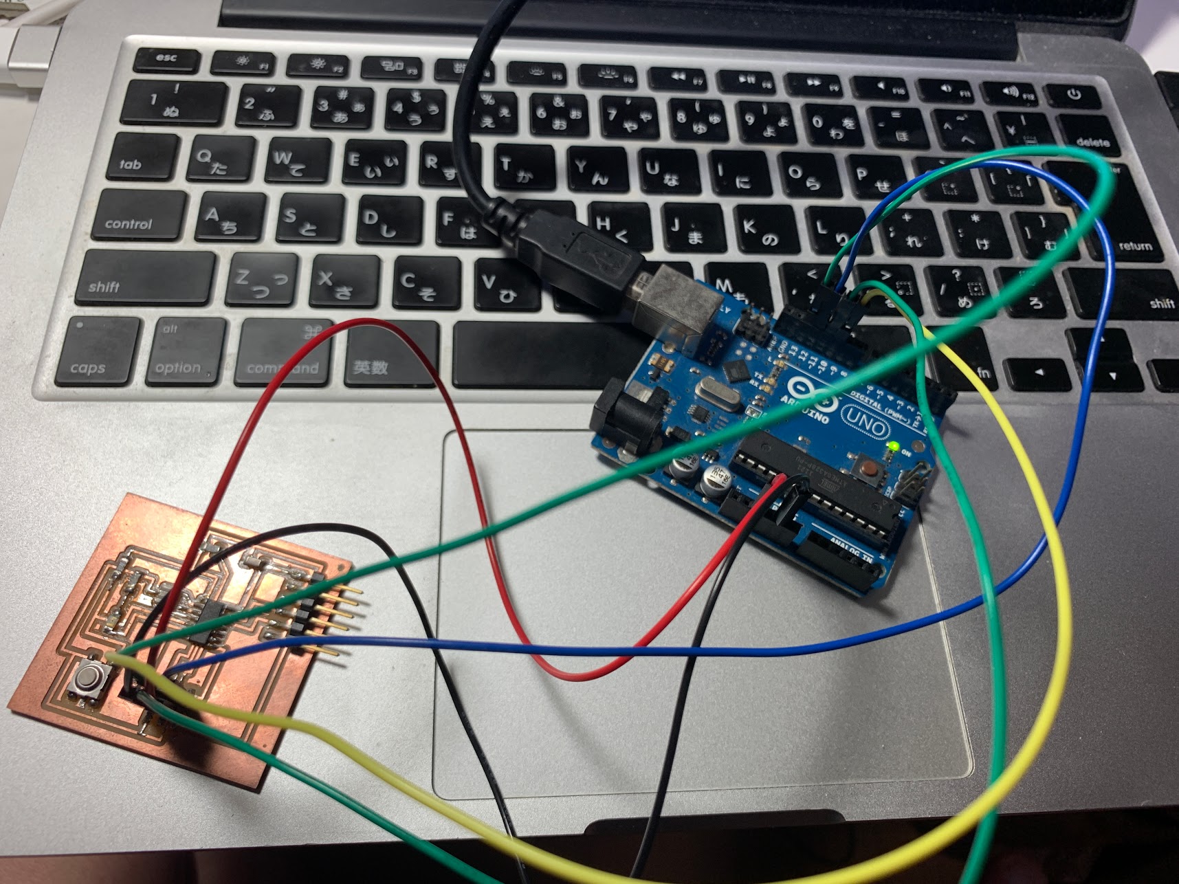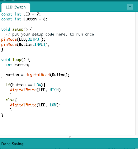 Then I wrote code with Arduino. This code intended to turn on LED when you push button on the board.