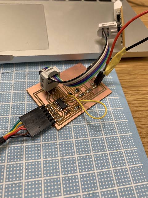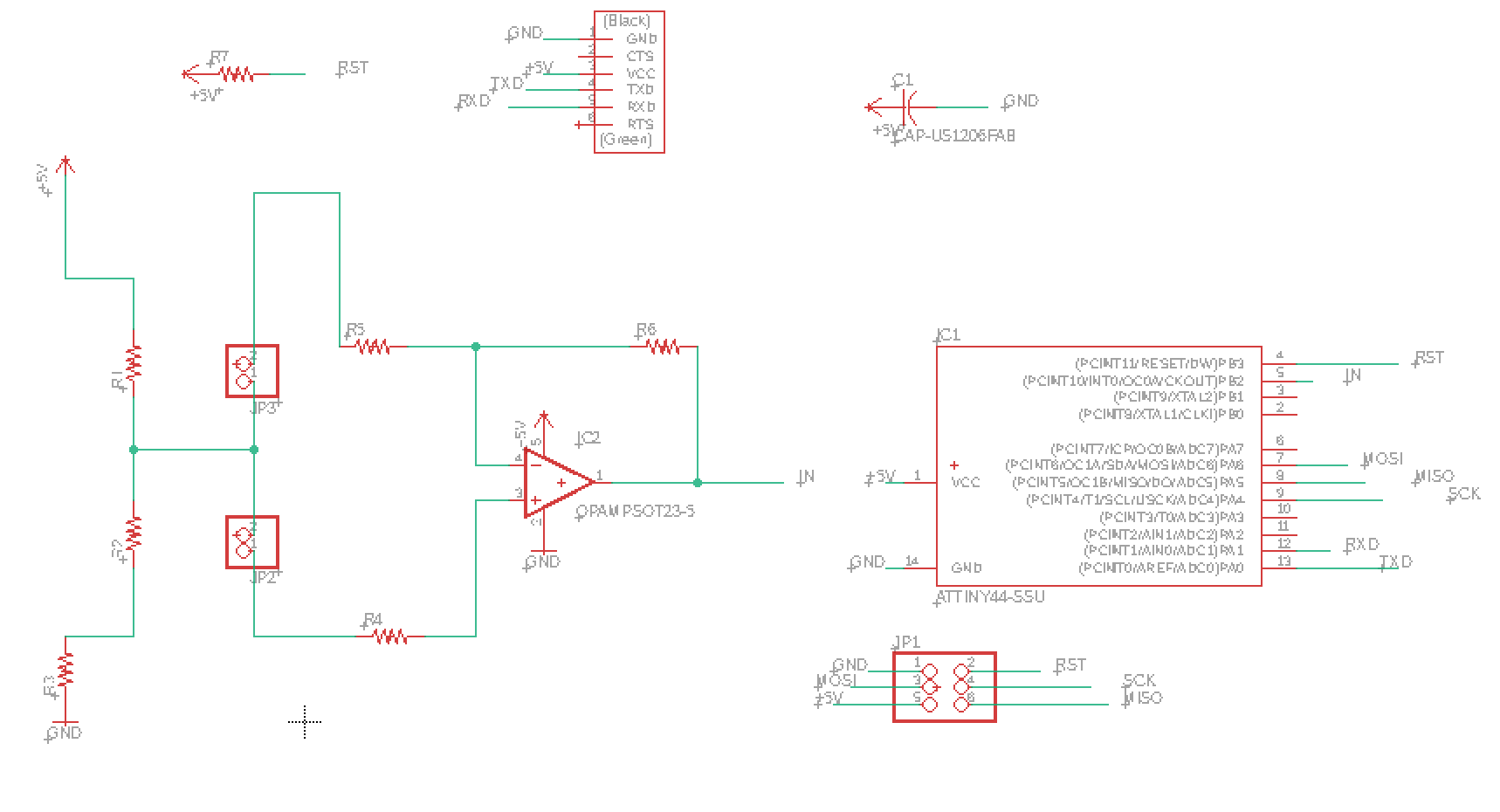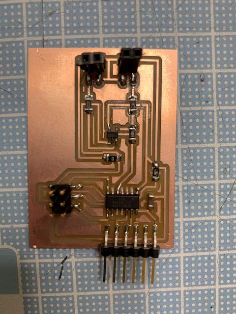 At first I assined Analog IN to pin 5 but this is not used as analog in for attyny 44 so I cut circuit and soldered jumper wire to pin 6.