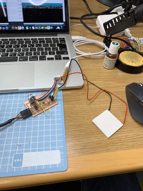 For this week assignment, I choose Peltier Cell for a sensor device. Peltier cell is usually used for small refrigerator since it is compact and silent. Peltier Cell is using Peltier effect which you give electric current, it creates a difference of temperature. But you can use it the opposite way: If you create a difference of temperature with Peltier cell, it gives electric current. This is called the Seebeck effect. So I focused on Seebeck effect and used it as an input device which sensed the temperature of heat of your hand palm.