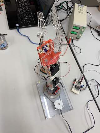 it worked out so I got now turntable movement function. and then I put the top part of the turntable with glue again. after that I combined arm part with the turntable by 4 screw. finally we made a robot arm.