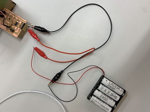 Making sure if it works with the battery. According to datasheet of Attiny 44, it works between 2.7V and 5.5V, so I connected three 1.5V AAA battery with it.