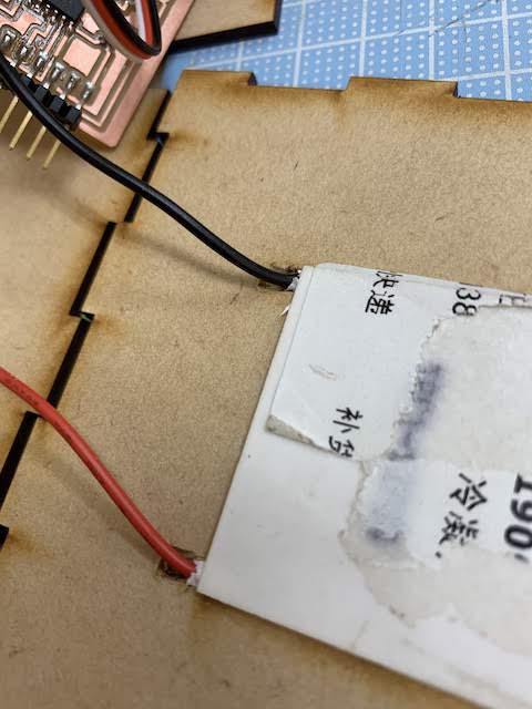 After I got minimum compornents(box, servo motor, peltier cell, and the board), I assembled them to make sure if it works.
