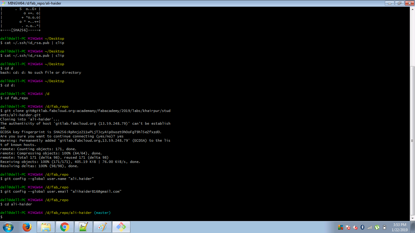 git clone git@git.fabacademy.org:fabacademy2019/fablbkhairpur/students/ali-haider.git( and press anter and wait for a while.).