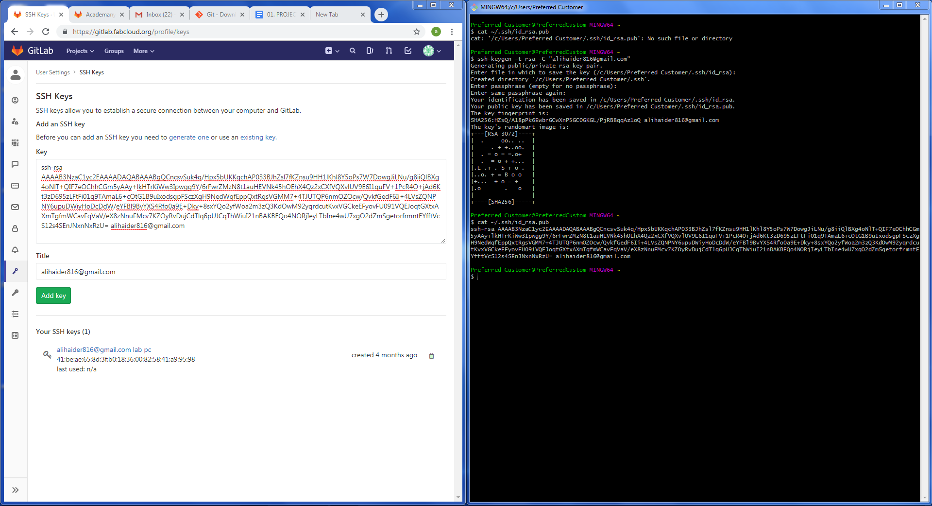 Please copy the complete given key starting with ssh-rsa and ending with your username and host, and paste it to the fab cloud>>settings>>sshkey>>key and press enter.