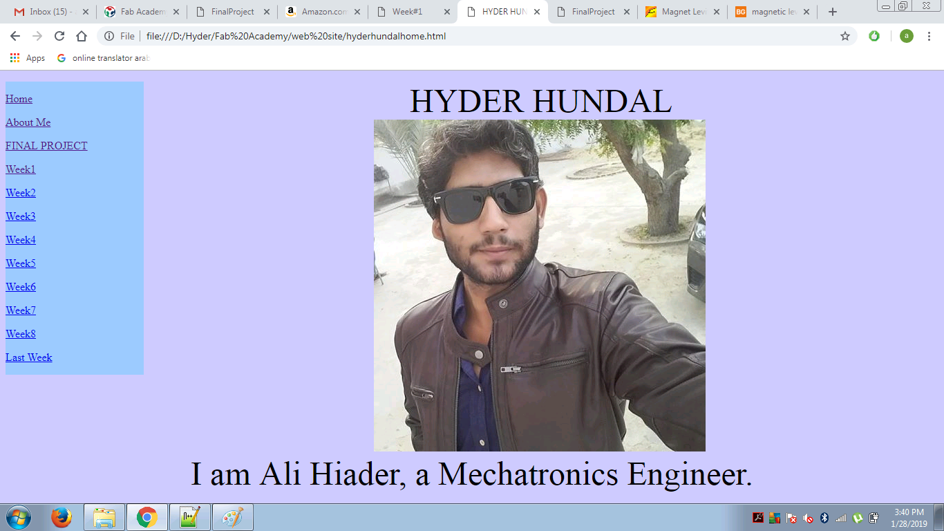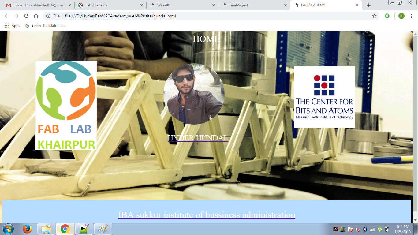 The tast of the first week is to buid a personal Website that we will be used in the six months of deploma in Fab Lab and will be used to documents the work, progress and achievements in the Fab Academy Deploma,this is my first time i am going to coding for website,so I started to learn the website development with the help help of online tutorials of HTML and CSS.