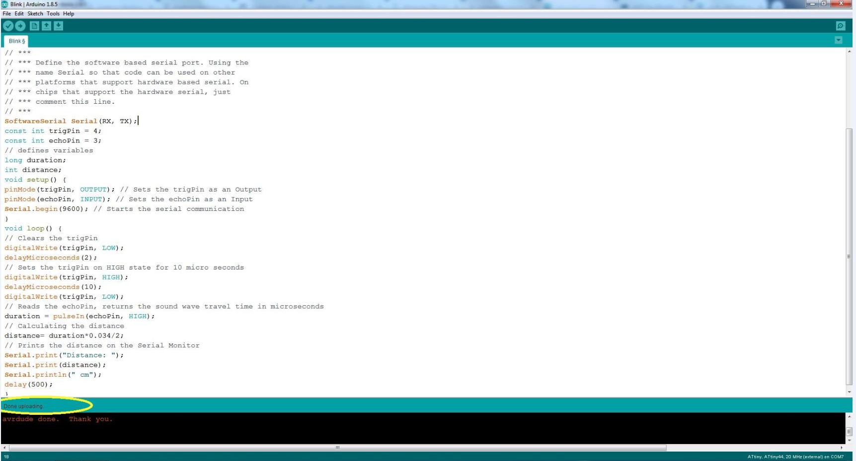 Now the board is ready for the programming. I am using the Arduino IDE for the programming of the Ultrasonic sensor.