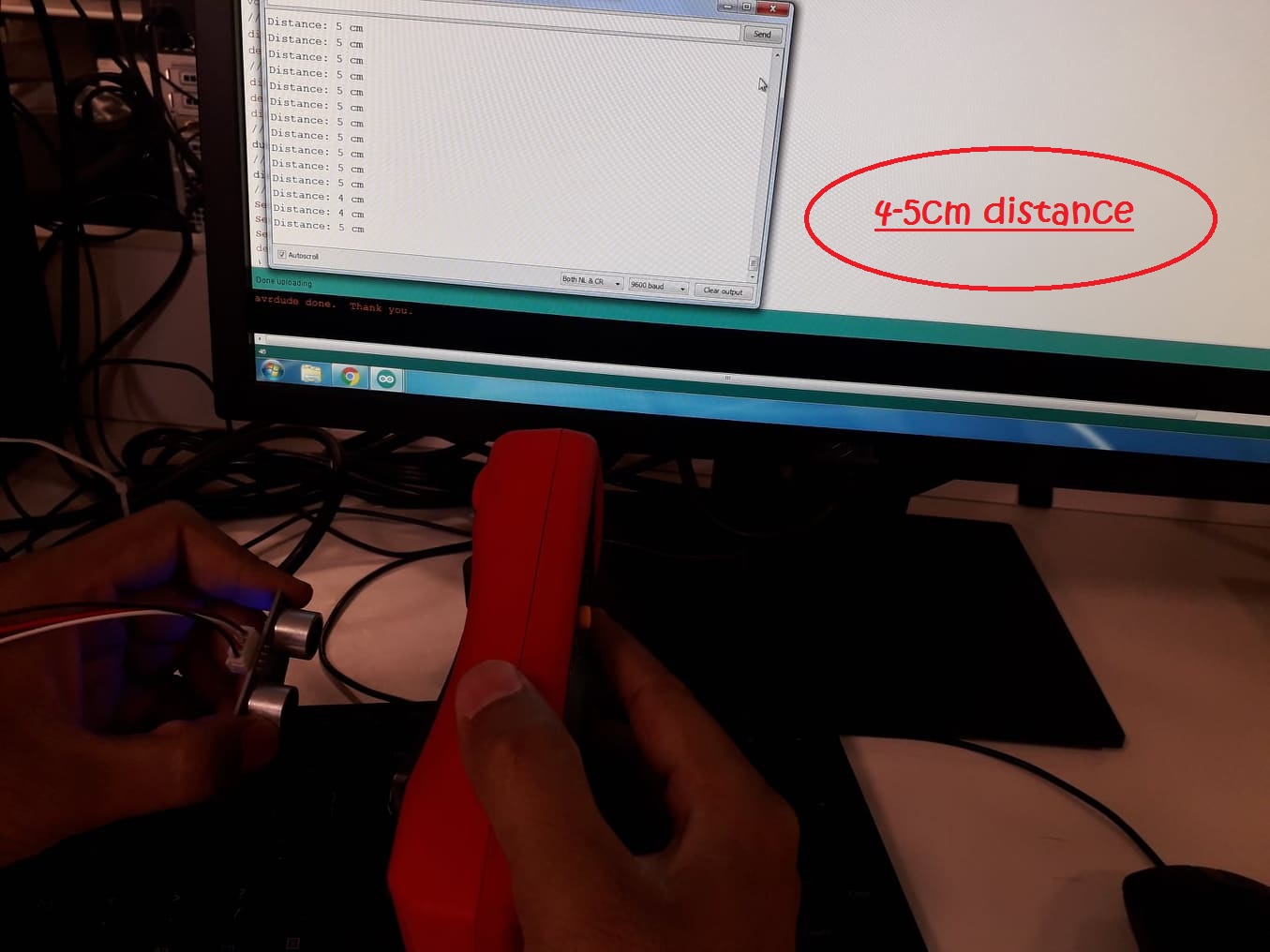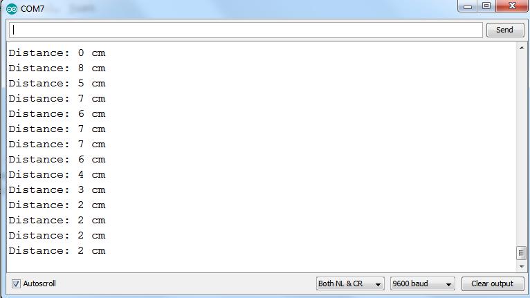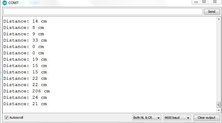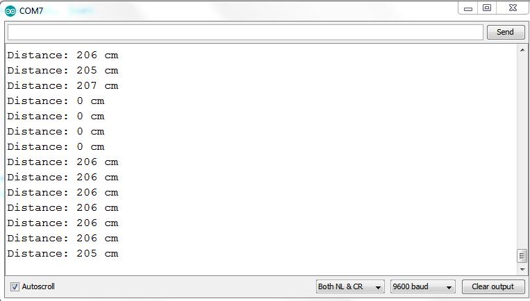 in figure. Furthermore the echo pin of sensor is connected to the pin 13 of leonardo which is also connected to led of board. The video given below shows that whenever there is change in signal