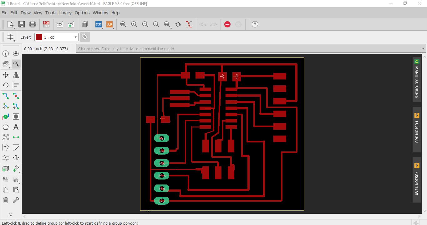 The next step is milling and soldering the board using the Roland SRM-20 machine.