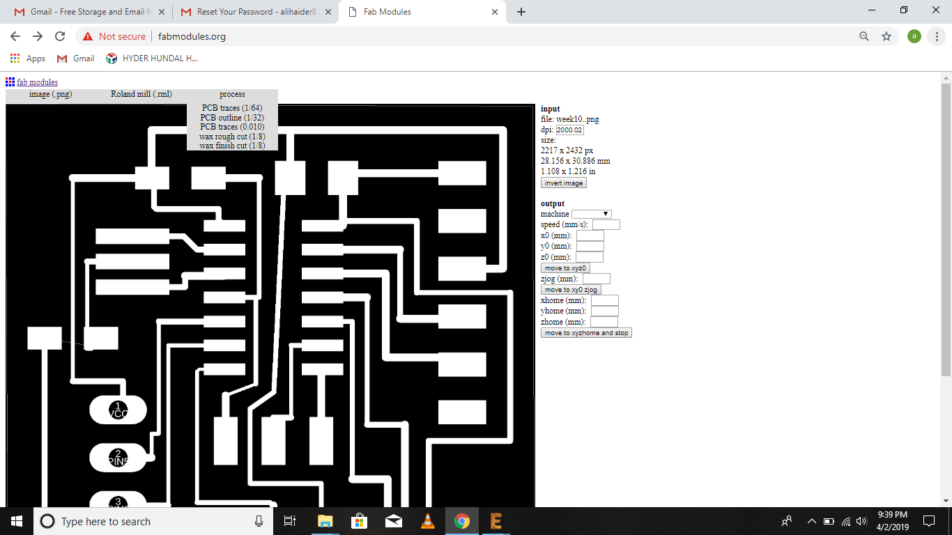 Now I have need of .rml files for the milling process for the PCB board. I am using the fabmodules.