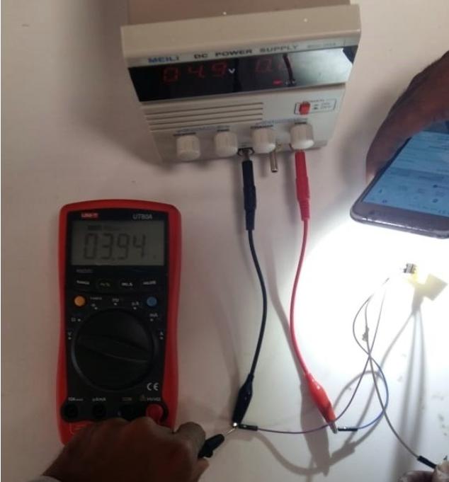 connected the sensor module to 5 voltage and checked the output on data pin and ground using multimeter. We observed that whenever we increase the intensity of light voltages increase and whenever