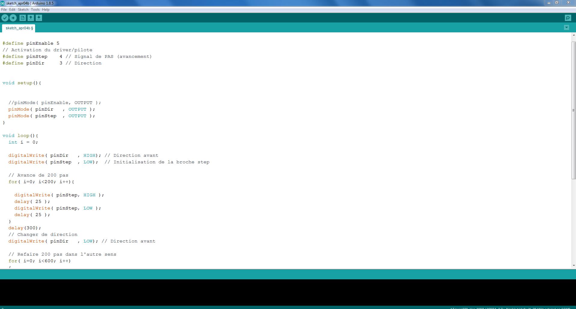 So now I am using my board of final project(atmega328p board), I will upload the code in this board and will run the stepper motor. Basically I need two digital pins, one digital pin for the direction and one PWM pin