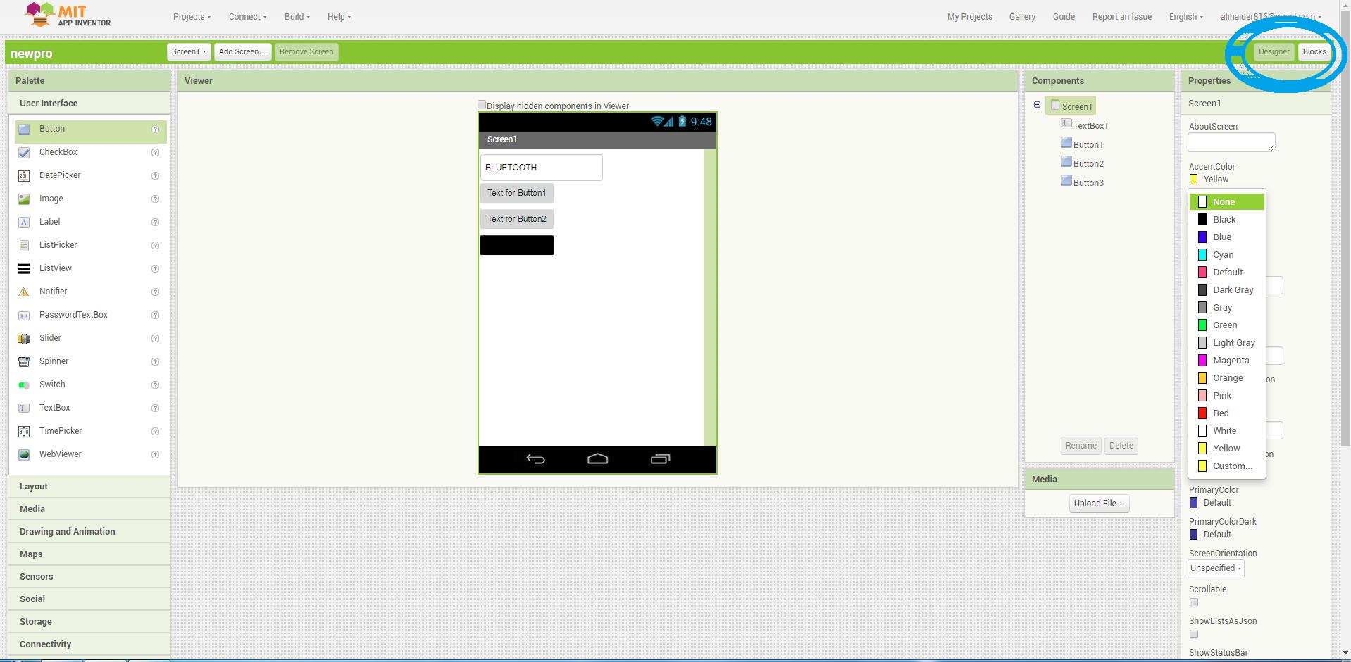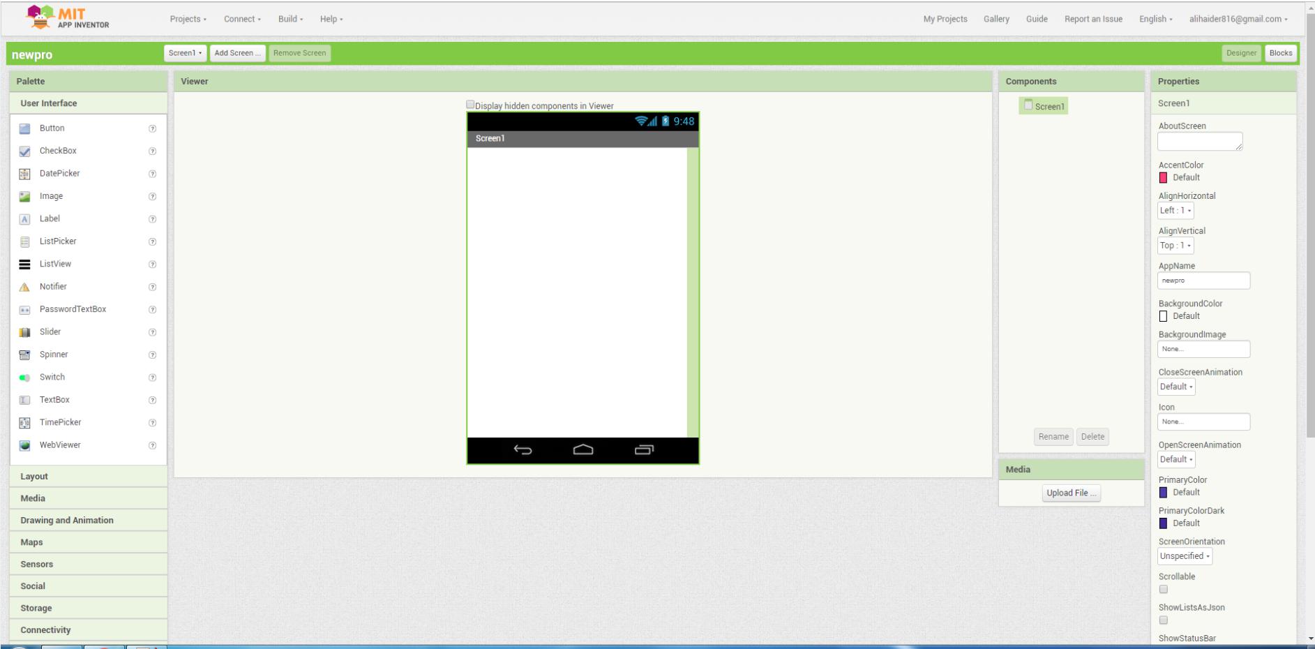 To start working on MIT App Inventor 2, we had to first register ourselves using google account.