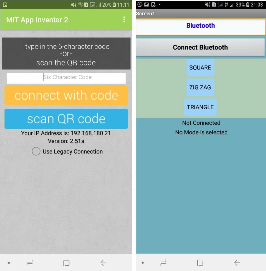 Thus far in this course we have been writing snippets of code which are typically embedded in control doing different operations and/or communicating with PC or other micro-controllers. In this assignment our objective was to design application and/or interface which allows us to interact with the micro-controller boards thus sending in control instructions and receive status. For this assignment I had plenty of options such as Python, Javascript, Processing, MIT APP Inventor just to name a few. I took this as an opportunity to dip my toes into mobile app development. I don't have any prior experience in app development so I followed some tuturial and tried to learn how to make an application and communicate it in MIT app inventor.