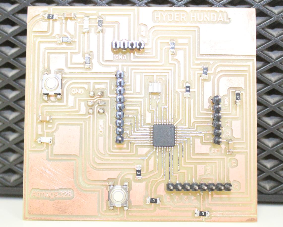 For this assignment I used my main circuit board, I have milled and soldered the board that is the atmega328p circuit board which I already explained in final project and one motor driving circuit which is also explained in final project.