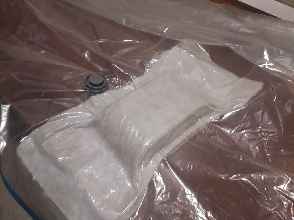 Place a breather and put the whole experiment into air bag which is ued to suck the air and build pressure on composite to attain the shape.