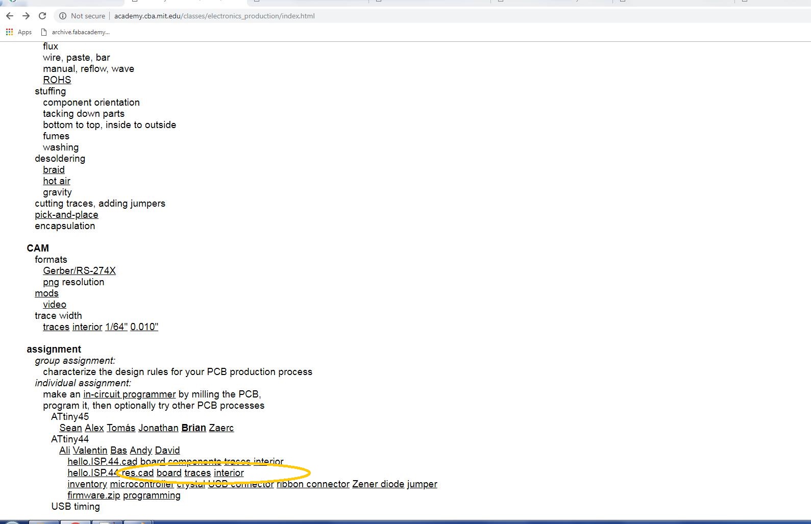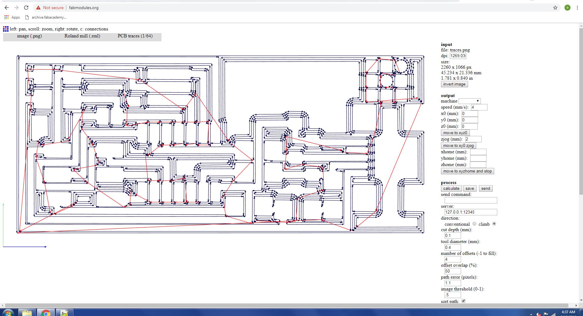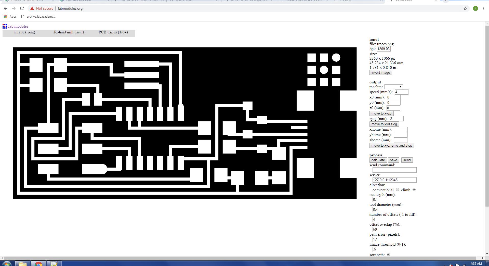 For the group assignment, we have to characterize the specifications of PCB production process using the PCB milling machine. For this we are using the FR-1 board for PCB, for the both group and individual assignments. In the process first we have to make traces with the 1/64 drill bit and also make outline using the 1/34 bit drill respectively. so we started our group assignment, first we download the given files of traces and outline and make it the rml files so we can go milling process. We are making the rml files by