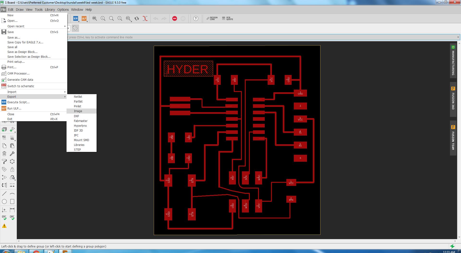 Prof.Neil gave an echo hello world board so I download it from the fab academy week and go for make some changes in it and make a complete PCB of it.