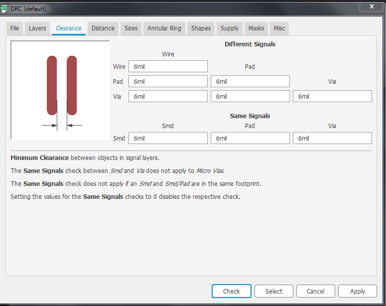 By default the 6mil is set there, we have to check for the 1/64inch drill bit.