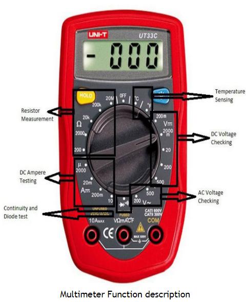 A digital multimeter, DMM is a test instrument used to measure electrical values including voltage, current and resistance, although modern DMMs often make many more measurements.Digital multimeters combine the testing capabilities of single-task meters the voltmeter (for measuring volts), ammeter (amps) and ohmmeter (ohms). Often they include a number of additional specialized features or advanced options.The face of a digital multimeter typically includes four components:
