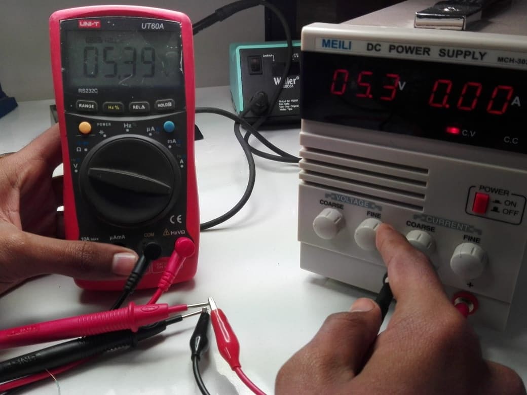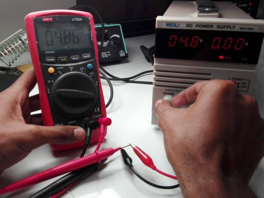 Here we are checking volts and amps from the supply.