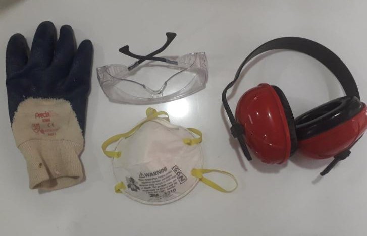 The tools we used for the safety precautions are the dust mask, earmuffs, safety glassess and gloves.
