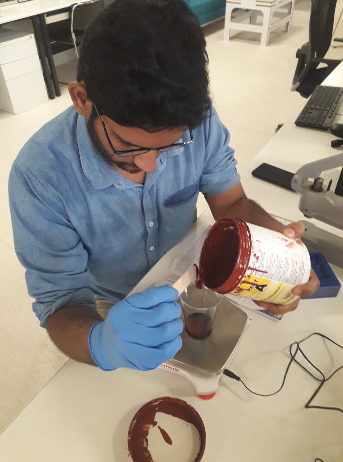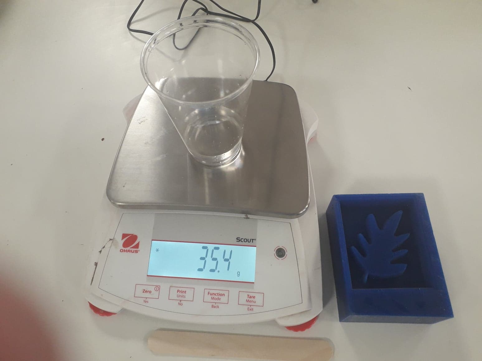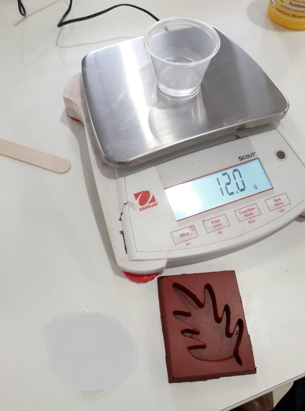 First I need to measure the quantity that how much material is needed. For this I poured water in my mold, and weight an empty glass. Then I put water into glass from mold and measured it.