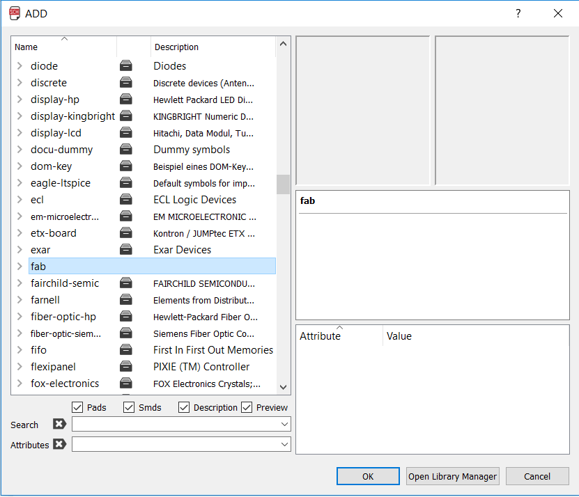 I started by importing FAB LIBRARY to Eagle. You can download the library fromhereInstruction to install the library can be found here.