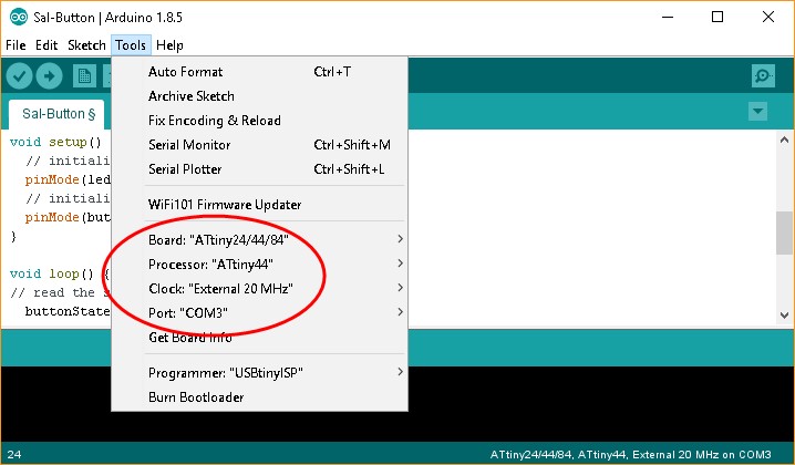 The next step is to add Attiny library. For that we need to go tools -> board -> board manager. Here we need to install the library shown in image given below.