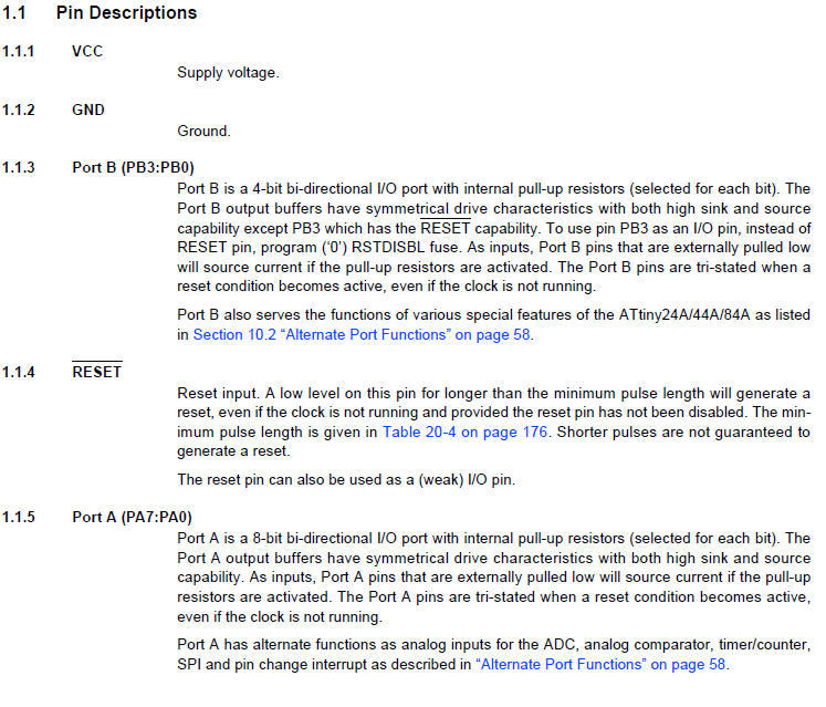 Before programming my hello board, I read the Atmel ATTiny 25/45/85 datasheet. The datasheet contains a lot of information useful to conceive your board like :