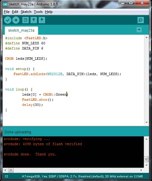 After Blink code successfully upload and run in 328p board now It is time to connect servo motor with board and program it to run at differnet angles.