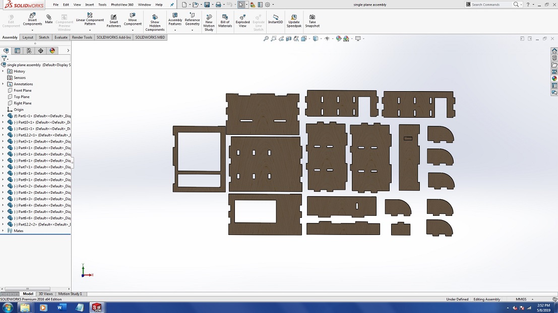 In order to avoid mistakes in cnc milling we initially laser cut the designed model by using cardboard with thickness of 4mm. Press-fit laser cut model is shown in figure below. From this laser cut we observed that there is no any such error in design therefore we can now move to cnc milling just to get the actual design.