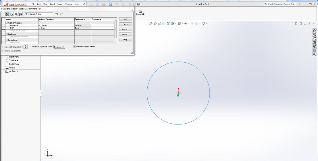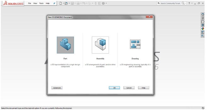•For making 3D Model of lamp part I have decided to work on SolidWorks 2016. My model consist of 3 different parts which can be assembled to make 3-D Models. I will be making this model as parametric pressfit kit which means the model will be based on equations. Whenever I want to change any kind of parameter I will change that for example I have will use 4mm thickness of cardboard which I can replace to 16mm or any other thickness. I can also reduce the hole size of my model. So firstly we start with selecting "Part"