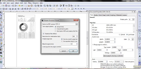 As per instructions we set cutting line strokes to 0.001 inches. Other vectors except 0.001 inches set to engrave with respect to their greyscale color. Then we convert our SVG file into PDF because PDF is easy to use for laser, SVG files are acceptable, but often have scaling issues ,we setting page size to 36x48 inches from document properties and selecting 600 dpi as resolution for rasterization. link