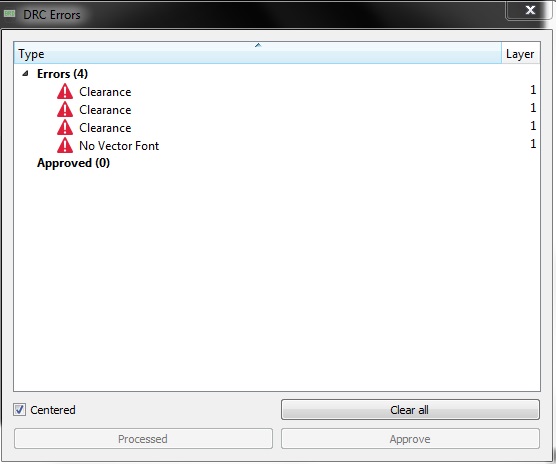 Board is completed and go to DRC (Design Rule Check) command,in clearance i put the value endmill 1/64" in 15.625 mil.