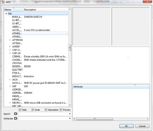 For making schematic circuit,we have to add components from "add tool" at left side tool bar then new window opens and choose components from fab library.
