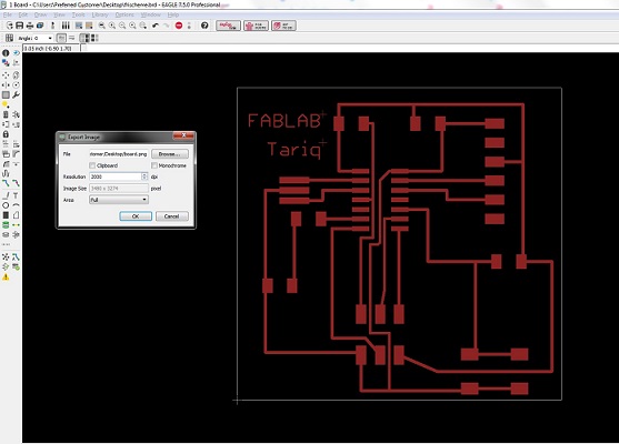 when png file was generated, open it in paint for making traces and outline file for generating .RML file then further process in Roland SRM-20 Milling machine