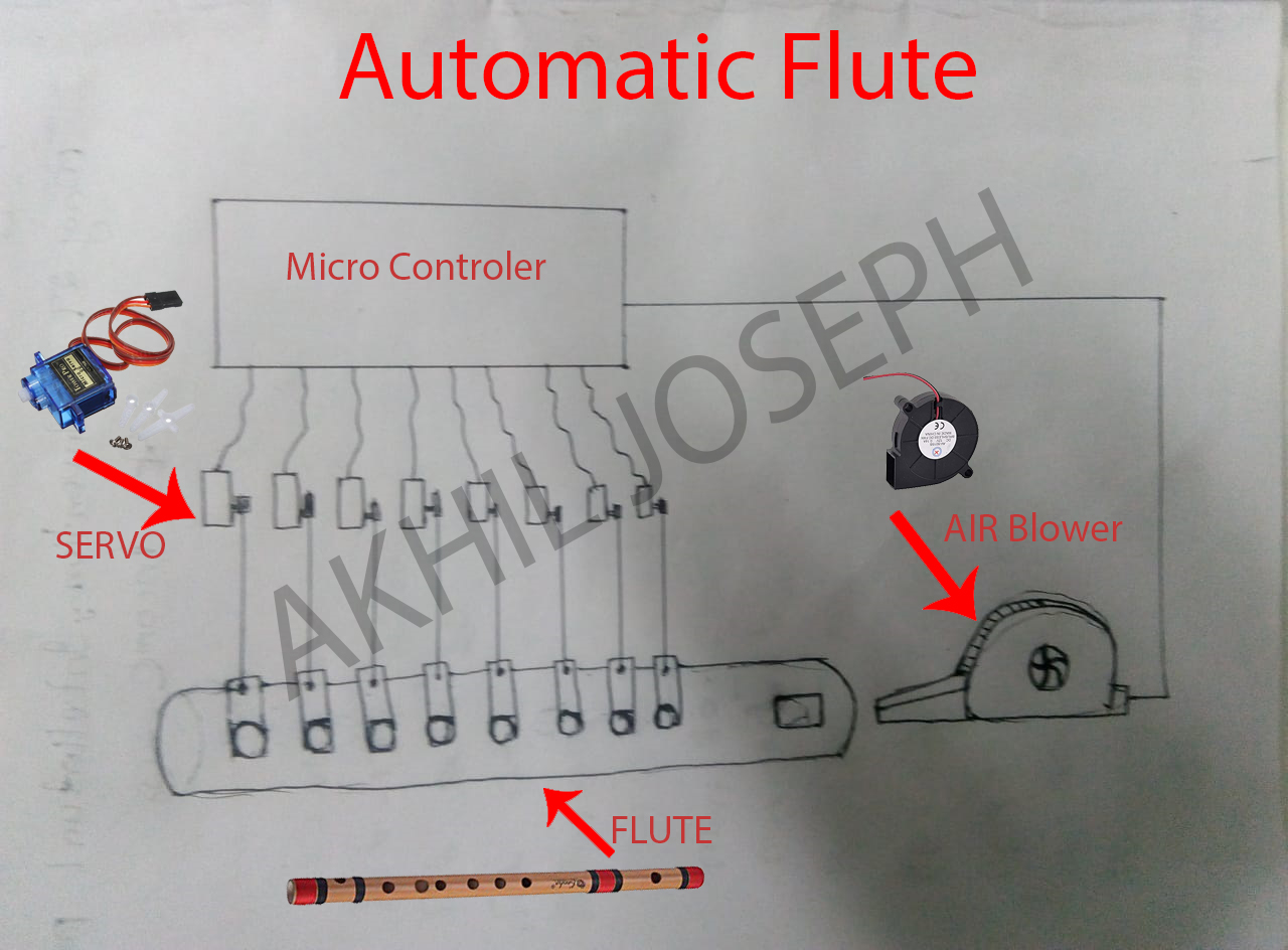 Flute is musical instrument which work on blow of air with 6 hole to be controlled by finger tips for melodius music.In Indian classical music we use a Bamboo flute which is one of the important part and one of the oldest instrument.The flute pipe is closed at one end and the melodius sound in it is due to vibration created and resonant frequency produced at the open end. Flutes are also made from PVC pipes and here I am using one PVC flute.