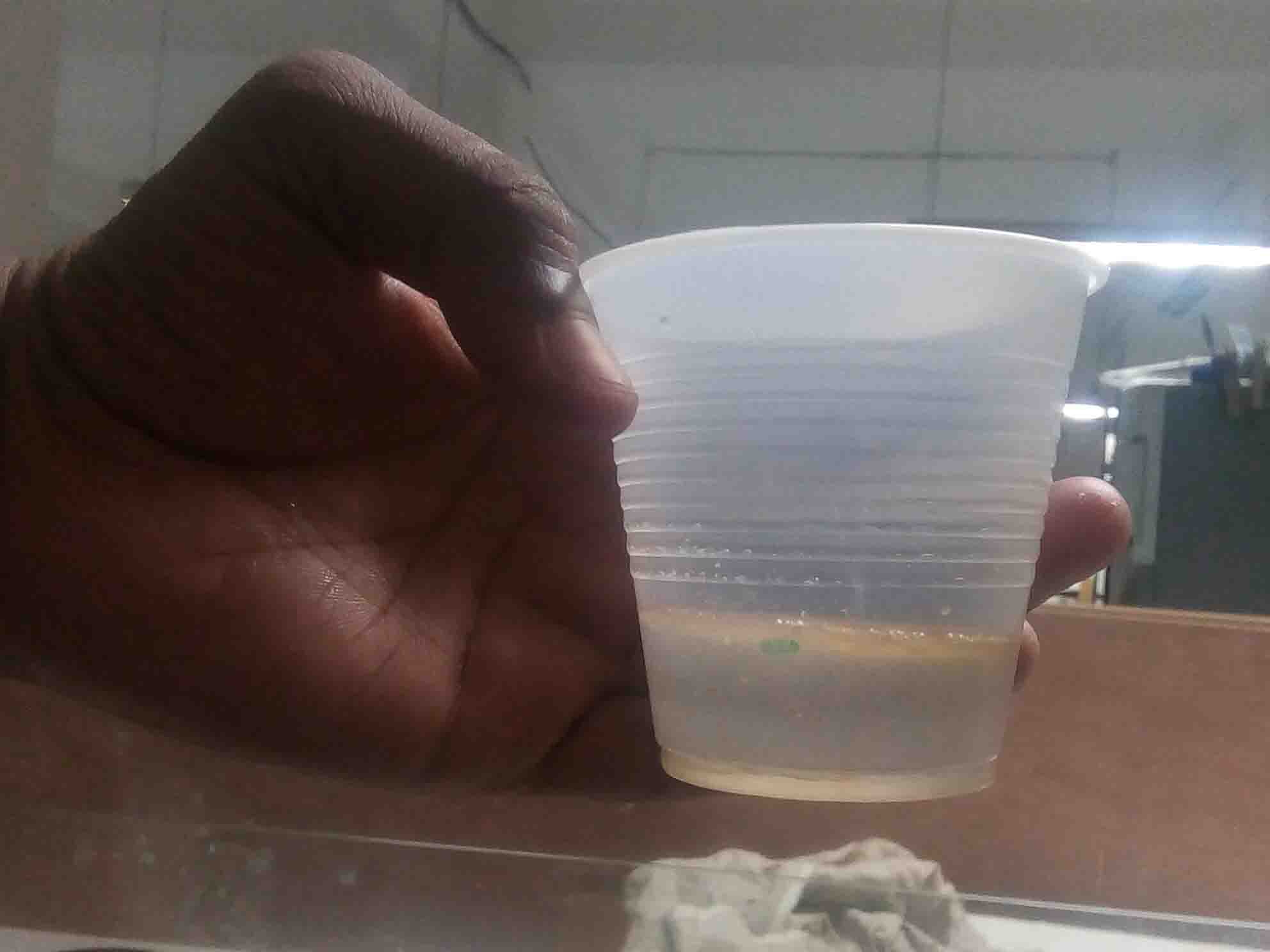 there are two parts of resin. Part A and Part B. The proportion to mix both of them is "1:1". But first we need to measure the amount of resin needed for the negetive mold making. For that pour some water into the mold and pour it back to the glass and mark the level.