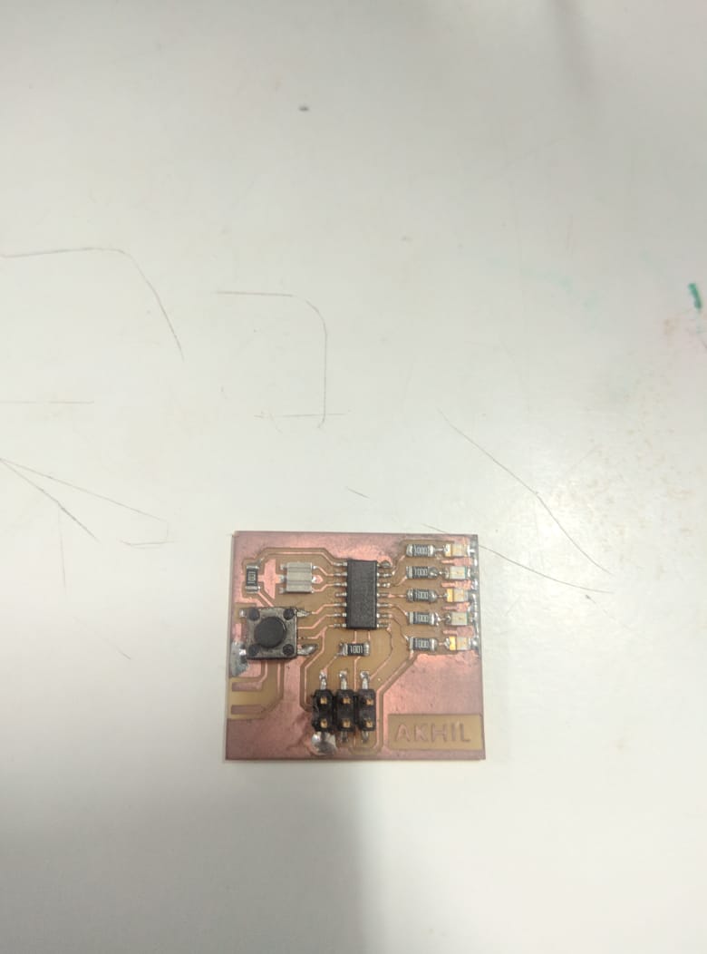 This board i used for embedded programing week, it have 1 switch in digital pin 8. and have 5 LEDs on pin 0,1,2,3,4 2 blue leds and 3 red leds. i use this as master board. heare we use master send slave recive mode. so no address is assigned for master board.