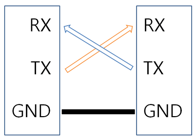 UARTs do exist as stand-alone ICs, but they’re more commonly found inside microcontrollers. You’ll have to check your microcontroller’s datasheet to see if it has any UARTs. Some have none, some have one, some have many. For example, the Arduino Uno - based on the “old faithful” ATmega328 - has just a single UART, while the Arduino Mega - built on an ATmega2560 - has a whopping four UARTs. As the R and T in the acronym dictate, UARTs are responsible for both sending and receiving serial data. On the transmit side, a UART must create the data packet - appending sync and parity bits - and send that packet out the TX line with precise timing (according to the set baud rate). On the receive end, the UART has to sample the RX line at rates according to the expected baud rate, pick out the sync bits, and spit out the data. Here is the conection between the device.