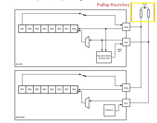 I used I2C communication before for interfacing some modules witrh arduino development boards. As i mentioned earlier, i choosed I2C communication to do the assignment this week. I would like to know more about I2C communication. So what is i2C communication? The Inter-integrated Circuit (I2C) Protocol is a protocol intended to allow multiple slave digital integrated circuits (chips) to communicate with one or more master chips. Like the Serial Peripheral Interface (SPI), it is only intended for short distance communications within a single device. Like Asynchronous Serial Interfaces (such as RS-232 or UARTs), it only requires two signal wires to exchange information. I2C requires a mere two wires, like asynchronous serial, but those two wires can support up to 1008 slave devices. Also, unlike SPI, I2C can support a multi-master system, allowing more than one master to communicate with all devices on the bus (although the master devices can’t talk to each other over the bus and must take turns using the bus lines). Data rates fall between asynchronous serial and SPI most I2C devices can communicate at 100kHz or 400kHz. There is some overhead with I2C for every 8 bits of data to be sent, one extra bit of meta data must be transmitted. The hardware required to implement I2C is more complex than SPI, but less than asynchronous serial. It can be fairly trivially implemented in software.