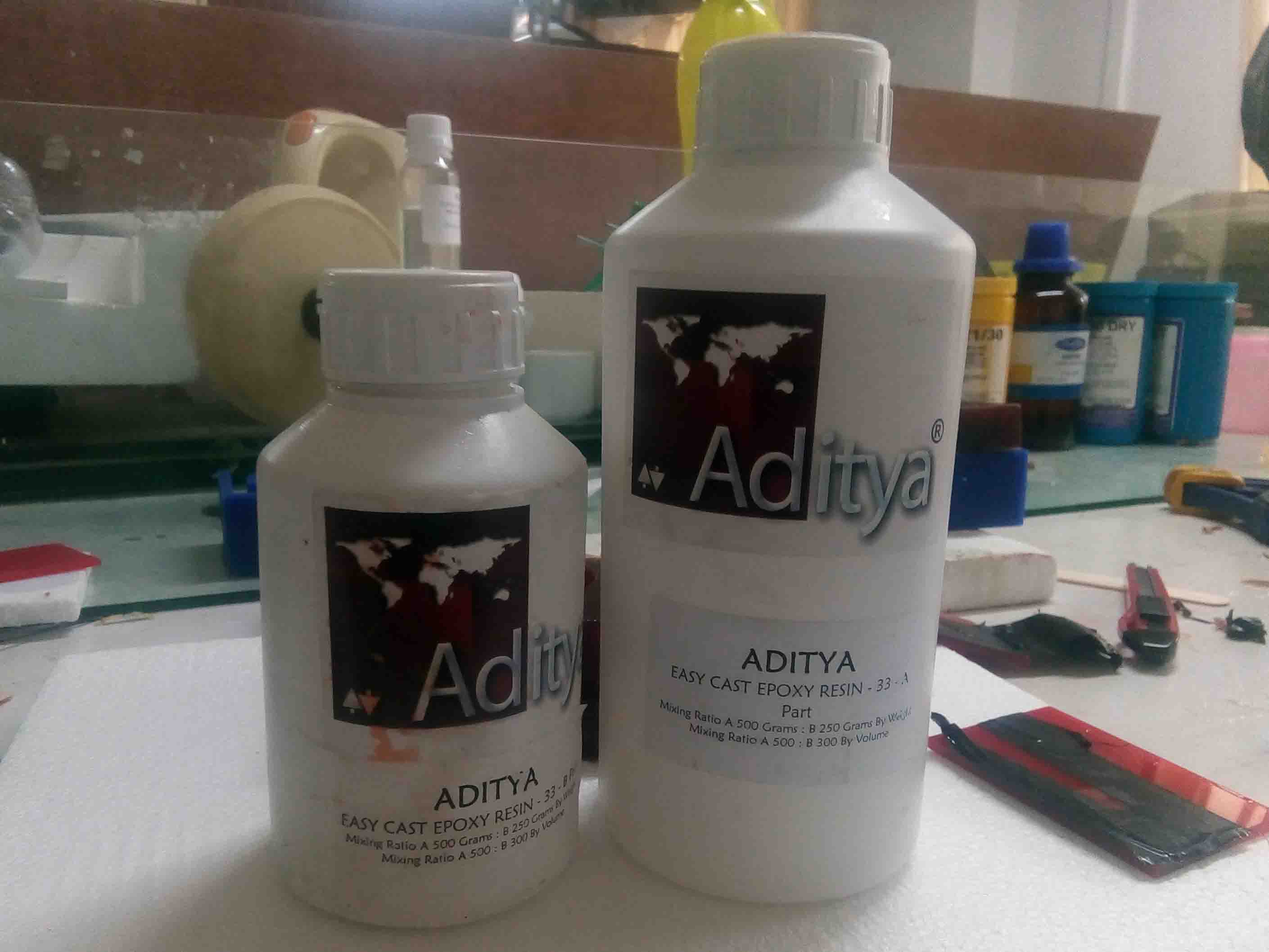 I used Easy Cast Transparent Epoxy Resin and it' having mixing ratio of 100A:50B and the curing time is about 24 hrs. This item i use in Molding and Casting week.
