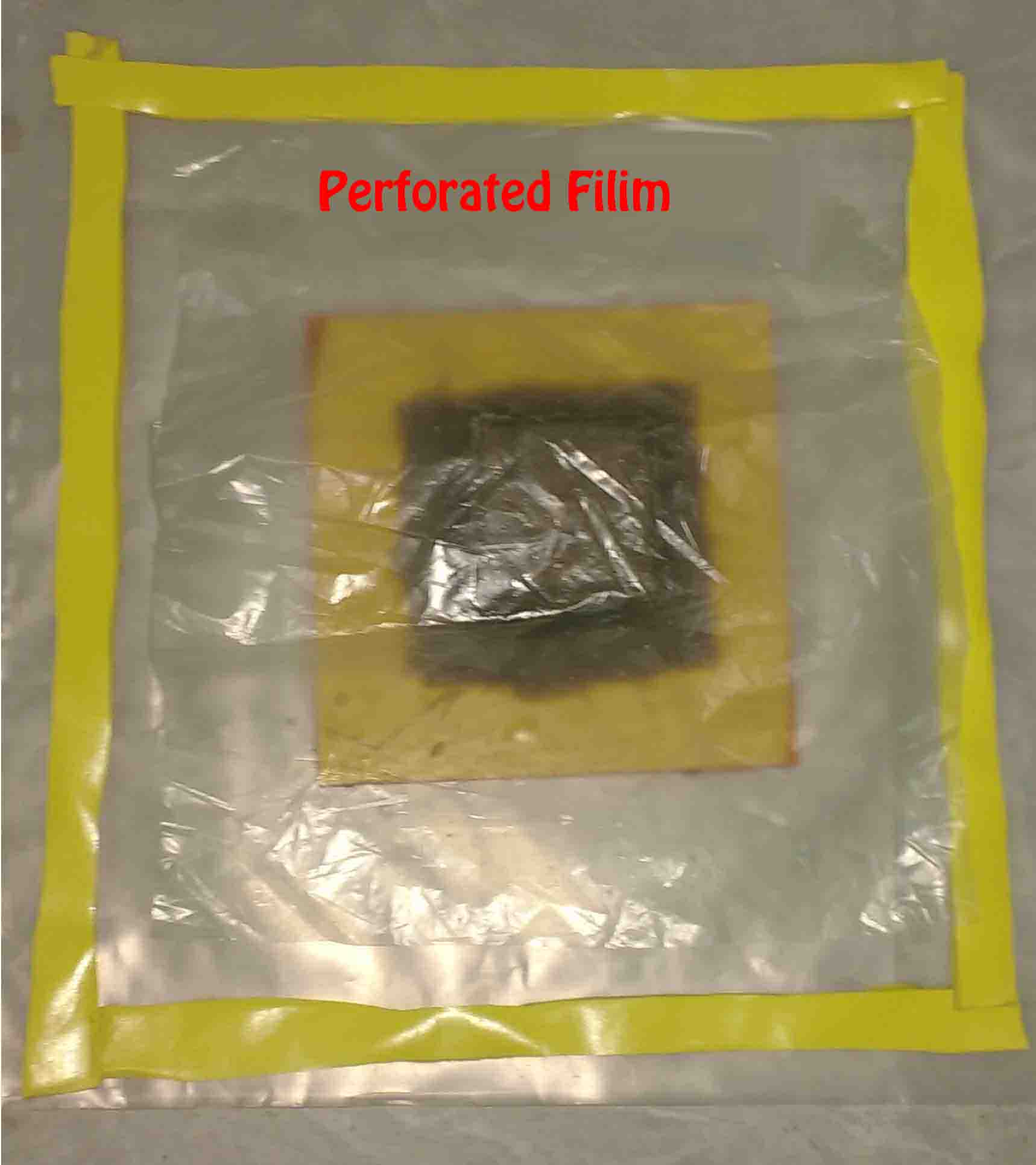 place the composit above the base of vacuum bag .Then place the perforated filim above it .