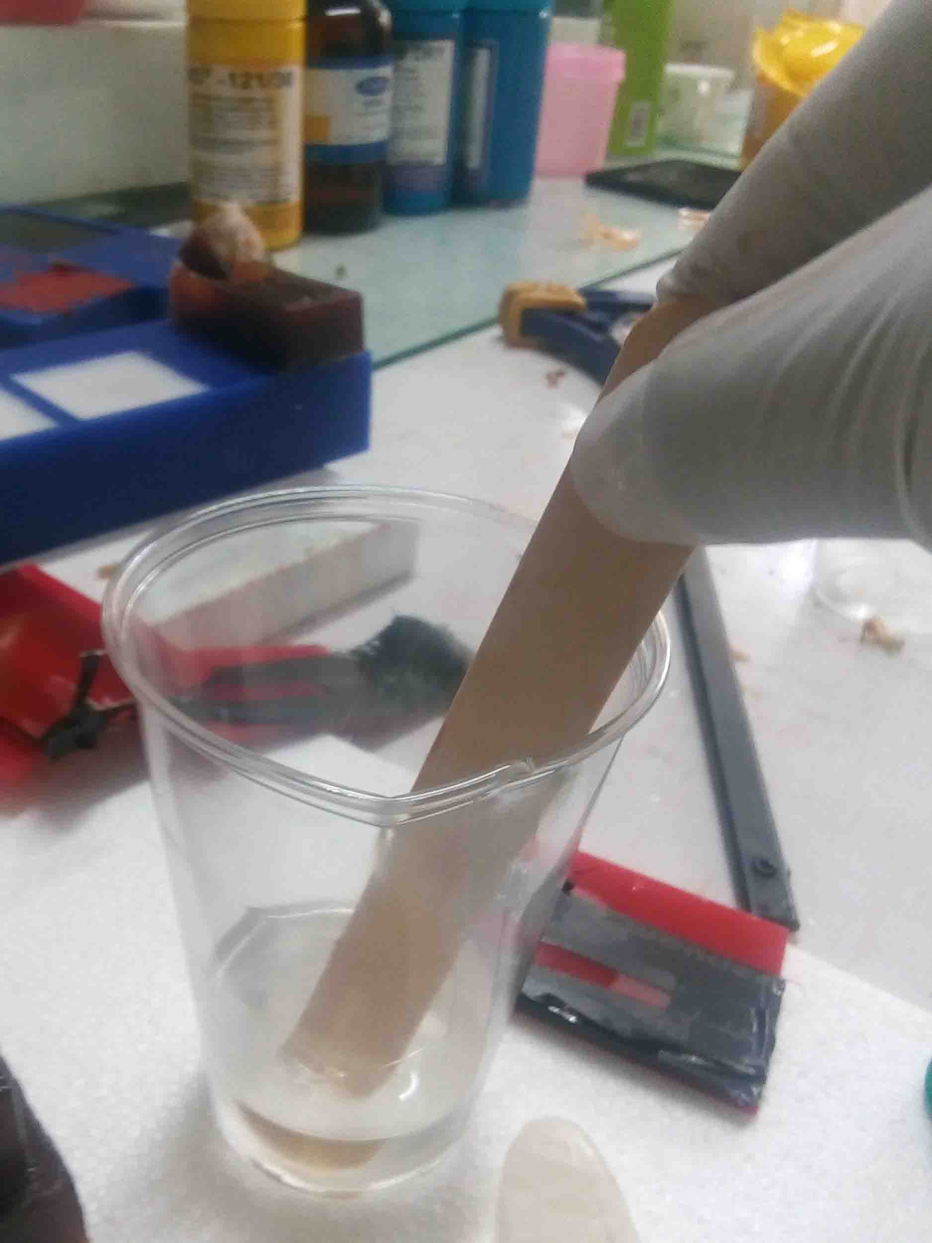 mix both parts with a stick, improper mixing may lead to problems in curing