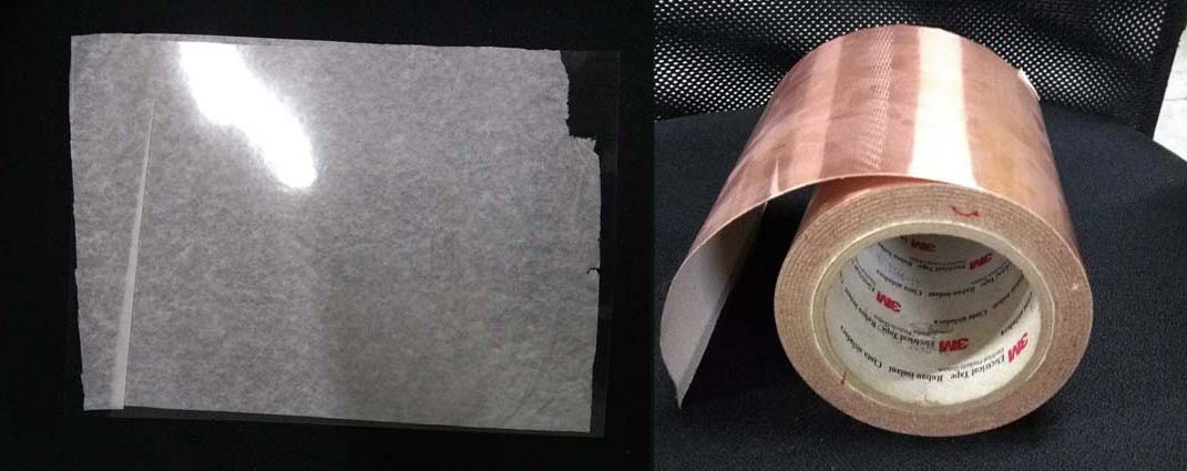 Now i need to make the flexible PCB. I decided to build one in my own way. To make a flexingle PCB, I decided to choose chemical eching using Ferric Chloride(FeCl3). I choose a OHP sheet as the base material for the PCB. Above of the vynyl sheet i stacked a copper tap sheet.
