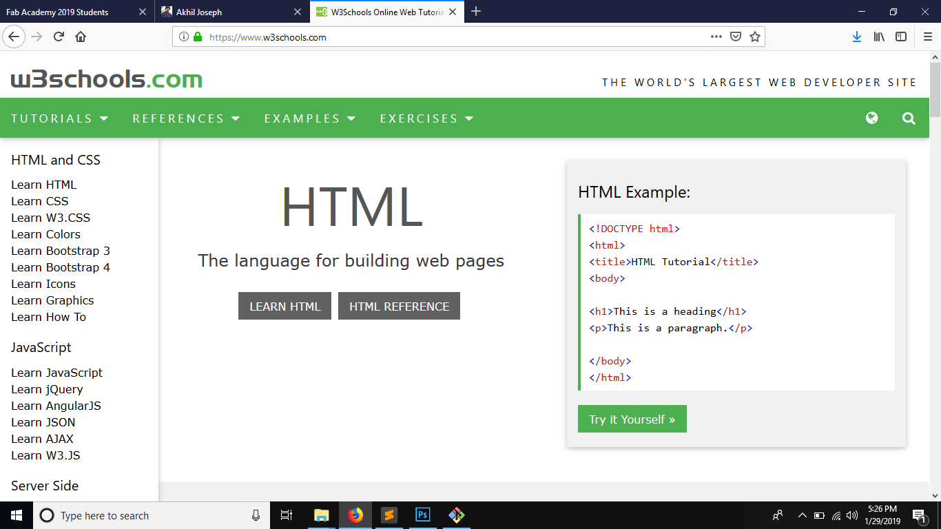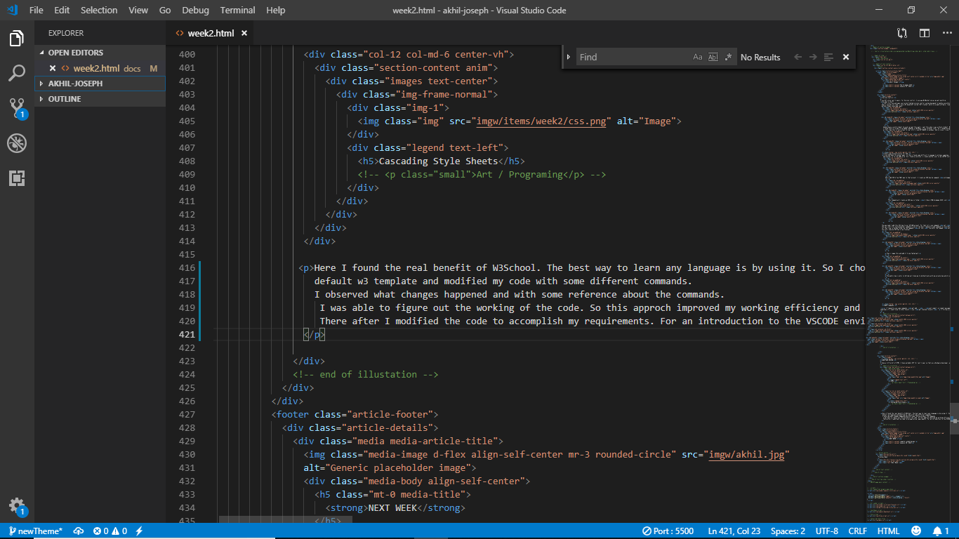 Here I found the real benefit of W3School. The best way to learn any language is by using it. So I choose a default w3 template and modified my code with some different commands. I observed what changes happened and with some reference about the commands. I was able to figure out the working of the code. So this approch improved my working efficiency and reduced my time consumption. There after I modified the code to accomplish my requirements. For an introduction to the VSCODE environment this youtube video.