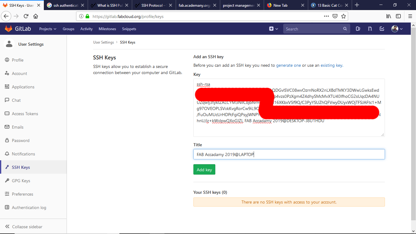 The public key i enter in Gitlab will help me to Authenticate with my private key which is stored in my laptop