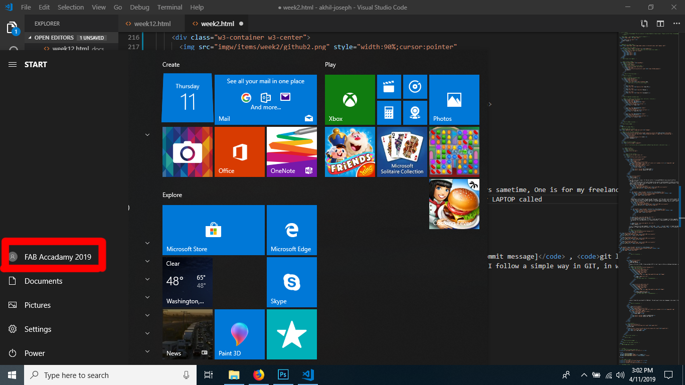I use SSH keys to use my repos. in this i found some difficult to manage 2 ssh keys sametime, One is for my freelance works. and another is for my FAB Jurny. So i found a solution, i create another user in my LAPTOP called 'FAB Accadamy 2019'