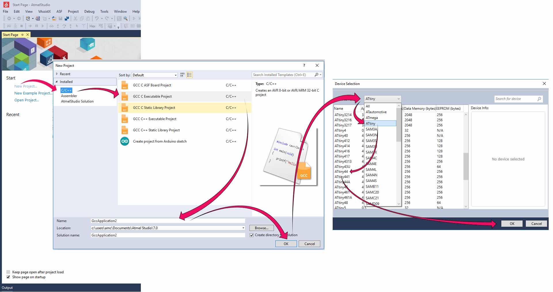 Additionally, Studio includes Atmel Gallery, an online app store that allows you to extend your development environment with plug-ins developed by Microchip as well as third-party tool and embedded software vendors. Studio 7 can also seamlessly import your Arduino sketches as C++ projects, providing a simple transition path from Makerspace to Marketplace.