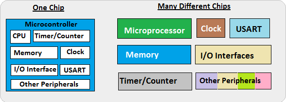 Microprocessor is a central processing unit (CPU) on a single chip. but in Microcontrollers it consist of CPU,Memmory Unit (RAM , ROM )and I/O's . but Microcontrollers is extremely slow when comparing Microprocessor .